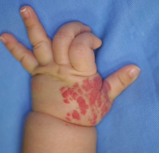 子どもの代表的な赤あざには『いちご状血管腫』と『単純性血管腫』があり